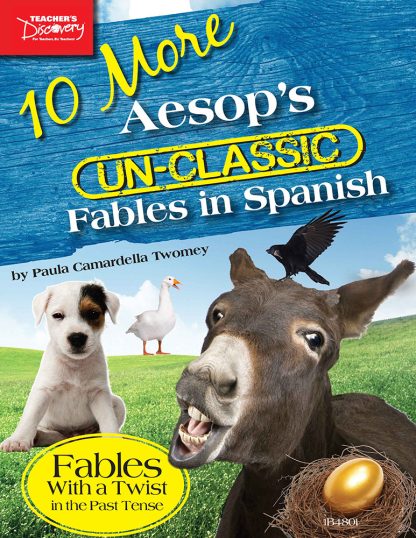 Written in the past tense, these fables feature authentic Spanish idioms and fun twist endings. Use them as a reader or source of mini-dramas to inspire students;#39; creativity and critical thinking skills. Includes oral and written practice, while encouraging the use of different tenses.Copyright 2016. English, Spanish. Intermediate. Reproducible. 93 pages.Book Download: PDF.Print Book: Softcover with CD (PDF). 8 x 11 inches.img alt=”” src=”//aedownload.net/teachersdiscovery/images/Author_Paula_Twomey_Sachuaman_Peru.jpg” style=”float: left; border-width: 0px; border-style: solid; margin: 0px 6px; height: 160px; padding-right: 10px;” /About the AuthorPaula Twomey/ is a Rockefeller Fellow, has a BA from SUNY Albany and an MA from Middlebury College, and is currently an adjunct instructor at Ithaca College. After 31 years in the classroom, Paula still enjoys teaching, traveling, mentoring, writing curriculum, authoring books, and giving advice!