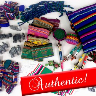 This prize bag contains a variety of authentic handicrafts from Mexico and Guatemala. Each bag contains a minimum of 100 authentic pieces in a woven Guatemalan Bag.Prize bag contains:30 Guatemalan Worry Doll Bags24 Friendship Bracelets10 Sarape/ Bookmarks10 Woven Coin Purses5 Guatemalan Kickballs5 Amigo/ Pens5 Mini-Onyx burros/5 Worry Stones5 Bobblehead TurtlesAll items are handmade so colors and items will vary.