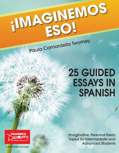 Introduce imaginative and personal essay writing to Spanish students. These essays develop the students’ writing skills by using advanced verb tenses, grammar, and idiomatic structures. By writing essays in Spanish, students will be able to formulate ideas, express opinions, and speculate about the future.Students write personal essays: 5 topics in Present Tense 3 topics in Preterit/Imperfect 3 topics in Present Perfect 4 topics in Future Tense 7 topics in the Subjunctive Clause with ;ldquo;si/em;rdquo; 3 topics in the Pluperfect TenseAligned to ACTFL Standards./Copyright 2016. Spanish. Intermediate, Advanced. Reproducible. 45 pages.Book Download: PDF. Adobe Reader required to view PDF.Print Book: Softcover with CD (PDF). 8 x 11 inches. Adobe Reader required to view PDF.img alt=”” src=”//aedownload.net/teachersdiscovery/images/Author_Paula_Twomey_Sachuaman_Peru.jpg” style=”float: left; border-width: 0px; border-style: solid; margin: 0px 6px; height: 160px; padding-right: 10px;” /About the AuthorPaula Twomey/ is a Rockefeller Fellow, has a BA from SUNY Albany and an MA from Middlebury College, and is currently an adjunct instructor at Ithaca College. After 31 years in the classroom, Paula still enjoys teaching, traveling, mentoring, writing curriculum, authoring books, and giving advice!