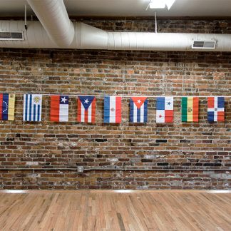 Argentina, Bolivia, Chile, Colombia, Costa Rica, Cuba, Dominican Republic, Ecuador, El Salvador, Equatorial Guinea, Guatemala, Honduras, Mexico, Nicaragua, Panama, Paraguay, Peru, Puerto Rico, Spain, Uruguay and Venezuela. Contains one 21-piece flag set.Banner: 35 feetFlags: 12 x 18 inchesMade of nylon and polyester