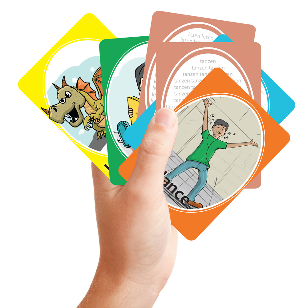 Teach and reinforce food vocab in a way that students enjoy! Whip out these cards on game day and let the fun begin. There are three ways to play that students know and love: ;ldquo;la gargouille/em;rdquo; (Old Maid), ;ldquo;Pioche !/em;rdquo; (Go Fish!), and ;ldquo;Le jeu des paires/em;rdquo; (matching game). No matter what method your students choose, the goal is the same: match the picture to the correct French word! These card sets are perfect for your visual learners, and can remind your whole classroom that learning vocabulary is FUN! Copyright 2014. Four players. Each game contains 49 playing cards and instructions. Beginning level. span style=”box-sizing: border-box; margin: 0px; padding: 0px; border: 0px; outline: 0px; vertical-align: baseline; font-weight: 700; font-family: Lato, sans-serif; line-height: normal; background-image: initial; background-attachment: initial; background-size: initial; background-origin: initial; background-clip: initial; background-position: initial; background-repeat: initial;”Access the vocabulary lists for each game byclicking on the “Additional Info” tab above./span