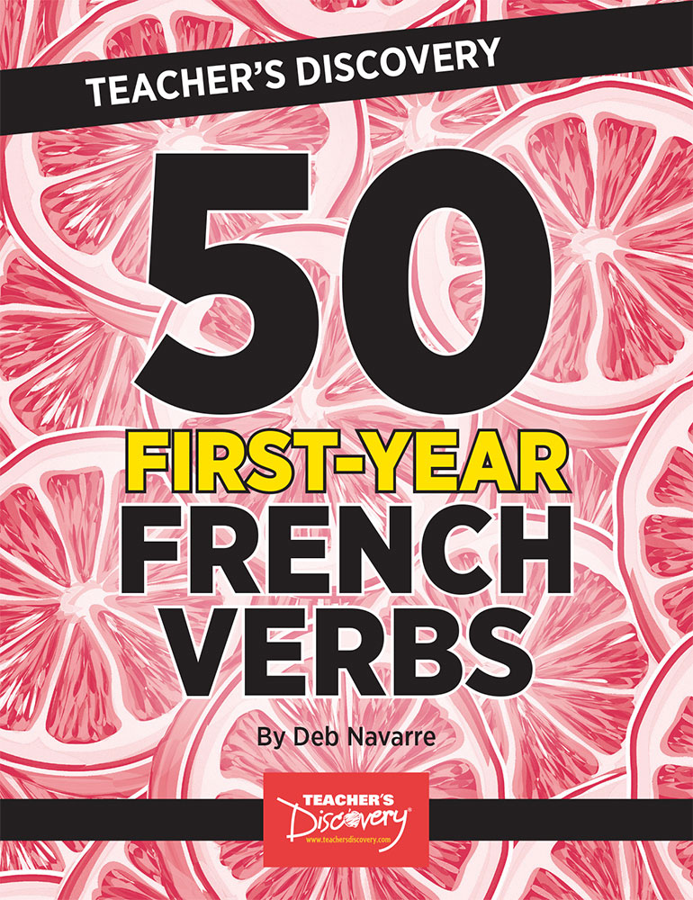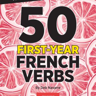 Half the size of our 100+ verbs book, this version has only the most important verbs for first-year French students. It shows how to use 50 first-year verbs in different tenses, forms, and moods: pr;eacute;sent/em, pass;eacute;/em compos;eacute;/em, and futur proche/em. Each verb is alphabetically listed in an easy-to-follow chart form. The book shows one verb per page with its English translation and all versions of French conjugations, plus example sentences. It’s the perfect mini-reference for every beginning student! Copyright 2018. English, French. Beginning. Middle school, high school. 4 x 5 inches. Softcover, 62 pages.