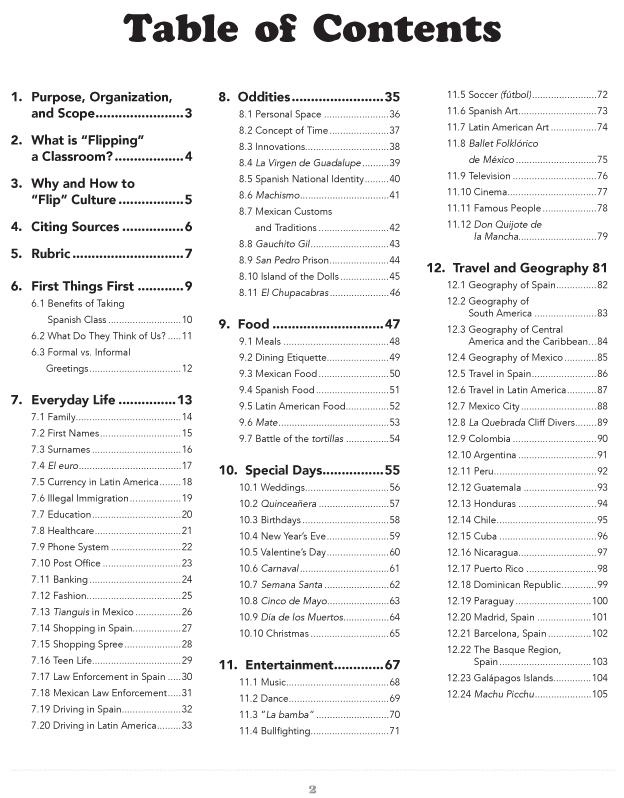 Our 80+ Flipped Culture Lessons for the Spanish Classroombook helps teachers introduce students to Spanish culture using lessons as out-of-class assignments or as in-class computer activities. These lessons are excellent tools for students to experience the Spanish worldview. ;ldquo;Flipping;rdquo; is when the teacher no longer lectures but uses class time to work with the students. Teachers use their time to interact with students and do more guided learning. Flipping the classroom gives students a greater knowledge of Spanish culture than ever before, as teachers will have additional time to teach vocabulary and grammar through in-class assignments. This book contains worksheets for the students to complete and bring to class for discussions.Copyright 2014. English, Spanish.All levels. Middle school, high school. Reproducible. 82 pages.Book Download:PDF.Adobe Reader required to view PDF.Print Book:Spiral-bound with CD (PDF).9 x 11 inches.Adobe Reader required to view PDF.img alt=”” src=”//aedownload.net/teachersdiscovery/images/Author_Sarah_Hopper.jpg” style=”float: left; border-width: 0px; border-style: solid; margin: 0px 6px; height: 140px; padding-right: 10px;” /About the AuthorSarah Hopper/ earned her bachelor;#39;s degree in French Education. She holds a master;#39;s degree in Second Language Education. She also holds certifications to teach French and Spanish in New York State, has studied abroad in France and Mexico, and has taught French and Spanish for 15 years at all levels. Her teaching has included distance learning courses, as well as traditional classes. She was nationally recognized as a 2014 PBS Digital Innovator. She loves learning new strategies and tools, and is currently pursuing certification to teach English as a Second Language. She resides with her three children and husband in northern New York.