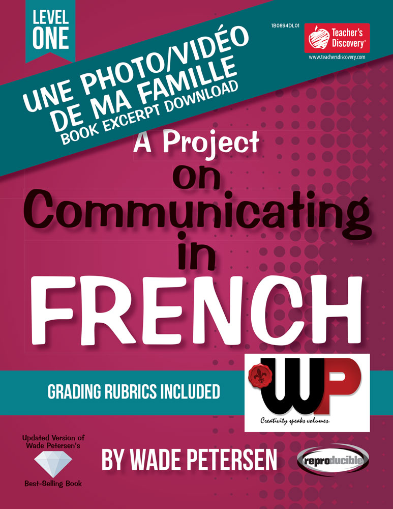 New Project from Wade Petersen!Students practice describing members of their family by name, relationship, and age, using a picture and a video, in addition to stating what activities their family does, using regular French verbs. Two rubrics included.Copyright 2019. French, English. All levels. Middle school, high school. PDF, 12 pages. Adobe Reader required to view PDF. img alt=”” src=”//aedownload.net/teachersdiscovery/images/Author_Wade_Petersen.jpg” style=”float: left; border-width: 0px; border-style: solid; margin: 0px 6px; height: 150px; padding-right: 10px;” /About the Author Wade Petersen has been teaching in Iowa for 30 years. He has taught French I, II, III, IV; freshman English; A.P. Composition; A.P. Literature; American literature; world literature and creative writing. He earned his B.A. in French and English from Northwestern College. During his undergraduate years, he studied at theAlliance Fran;ccedil;aisein Paris. In 2001, he earned his master’s degree in Effective Teaching, Learning, and Leadership from Drake University.Petersen has been the recipient of many prestigious awards and has served in leadership roles within the Iowa World Language Association. Petersen’s presentations continue to earn rave reviews, which include being named ;ldquo;Best of Iowa;rdquo; four times. He presents various workshops throughout the U.S. and serves as a keynote speaker at state conferences.Wade Petersen has published over 40 products with Teacher’s Discovery. His best-selling materials are creative, useful, and practical for any classroom. Wade’s publishing philosophy clearly connects with his motto that;ldquo;Creativity Speaks Volumes.;rdquo;