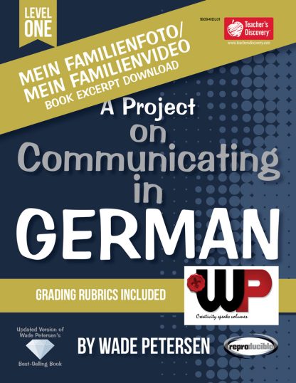 New Project from Wade Petersen!Students practice describing members of their family by name, relationship, and age, using a picture and a video, in addition to stating what activities their family does, using regular German verbs. Two rubrics included.Copyright 2019. German, English. All levels. Middle school, high school. PDF, 10 pages. Adobe Reader required to view PDF. img alt=”” src=”//aedownload.net/teachersdiscovery/images/Author_Wade_Petersen.jpg” style=”float: left; border-width: 0px; border-style: solid; margin: 0px 6px; height: 150px; padding-right: 10px;” /About the Author Wade Petersen has been teaching in Iowa for 30 years. He has taught French I, II, III, IV; freshman English; A.P. Composition; A.P. Literature; American literature; world literature and creative writing. He earned his B.A. in French and English from Northwestern College. During his undergraduate years, he studied at theAlliance Fran;ccedil;aisein Paris. In 2001, he earned his master’s degree in Effective Teaching, Learning, and Leadership from Drake University.Petersen has been the recipient of many prestigious awards and has served in leadership roles within the Iowa World Language Association. Petersen’s presentations continue to earn rave reviews, which include being named ;ldquo;Best of Iowa;rdquo; four times. He presents various workshops throughout the U.S. and serves as a keynote speaker at state conferences.Wade Petersen has published over 40 products with Teacher’s Discovery. His best-selling materials are creative, useful, and practical for any classroom. Wade’s publishing philosophy clearly connects with his motto that;ldquo;Creativity Speaks Volumes.;rdquo;
