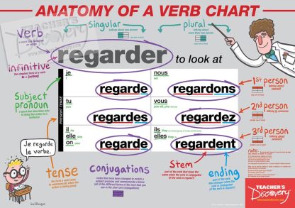 Give your students a quick reference for what verb charts are, how they work and the grammar terms used to describe them. 19 x 27 inches, laminated to last.