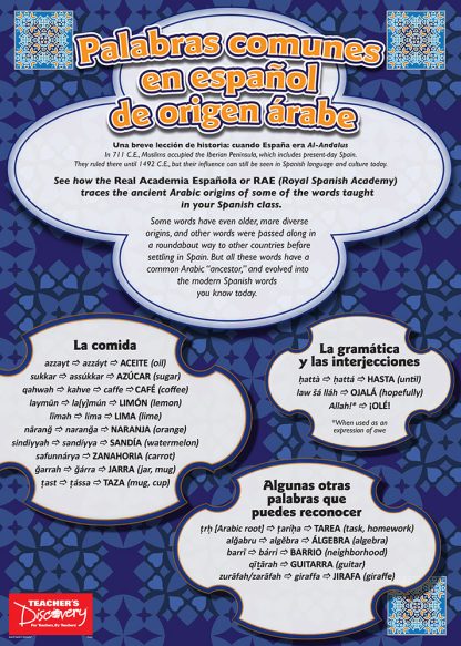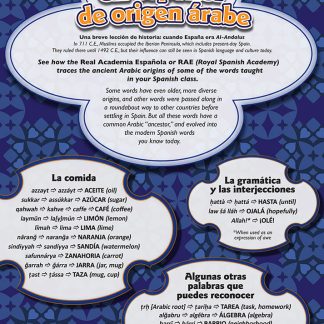 We are more alike than different. Incorporate culture into your classroom with a poster that shows how the Real Academia Espatilde;ola/em traces the ancient Arabic origins of some common Spanish words. Copyright 2018. 19 x 27 inches. Laminated.