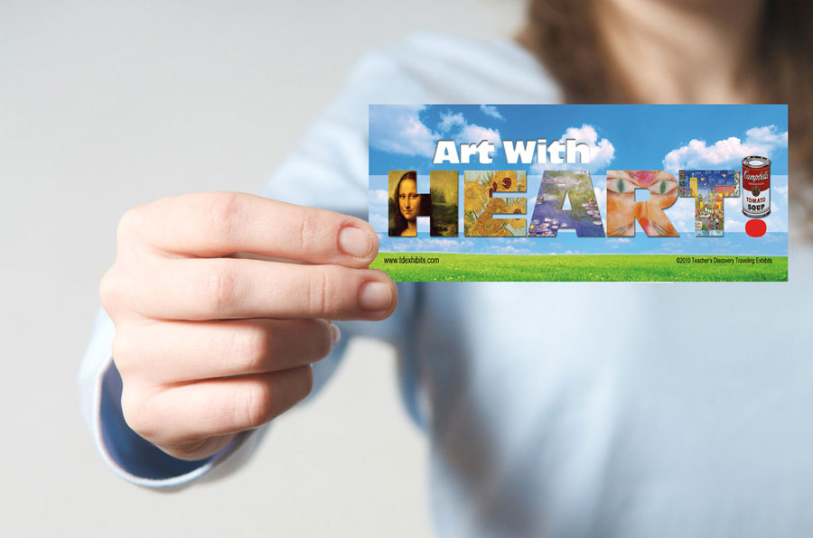 Art With Heart Bookmarks feature daVinci, van Gogh, Monet, Klee, Warhol, and Ringgold. Each 2×6 inch bookmark is full color on the front with facts on the back. Bookmarks are great to share, reward, or sell as a fundraiser!
