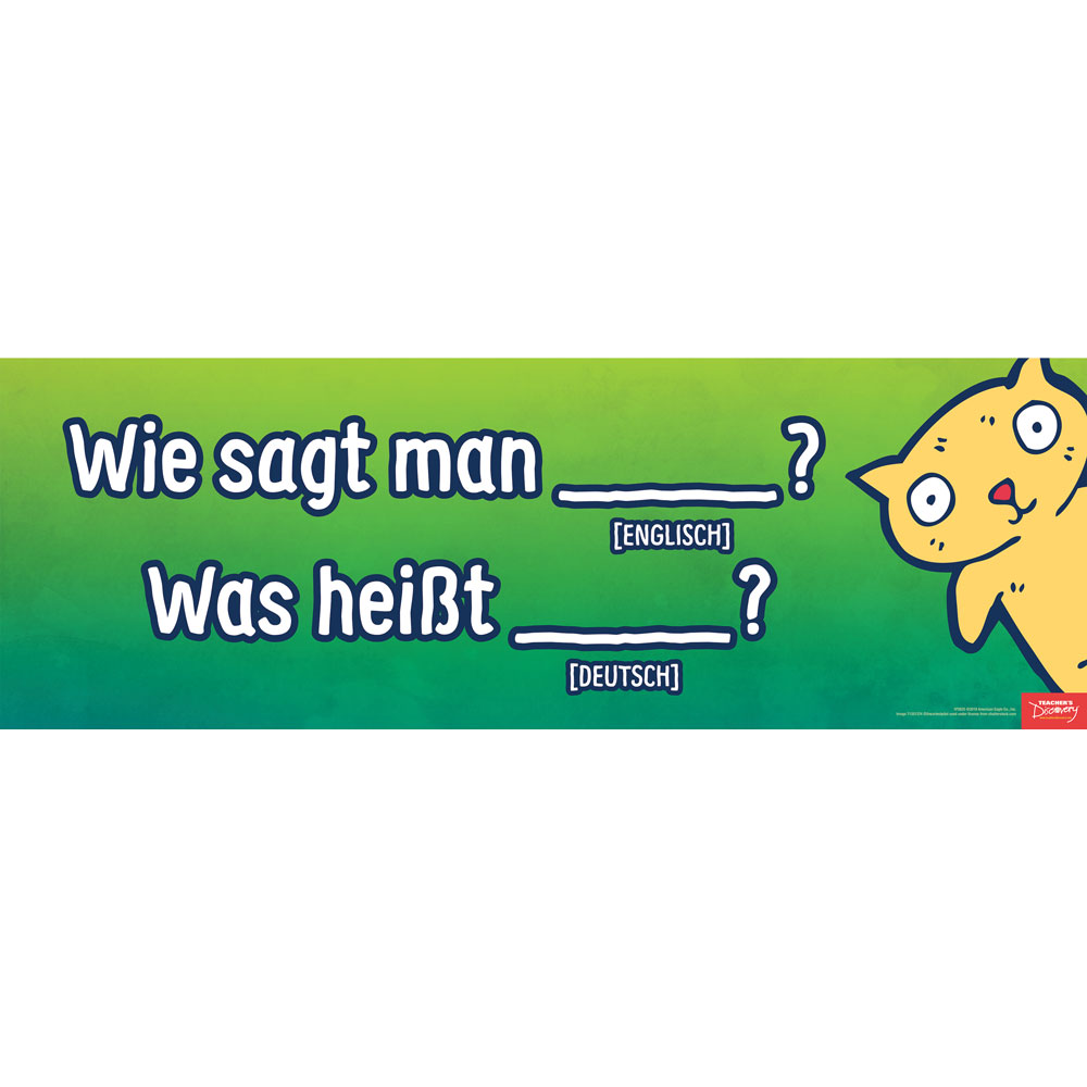 Students will need to ask for the meanings of German words that are new to them, and the German words for what they want to say–make sure they use German for both of these common questions! 13 x 38 inches. Laminated.
