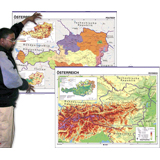 This colorful, two-sided wall map is in German and features physical characteristics on one side and political information on the other. Physical side shows mountain ranges, lakes, rivers and other geographical features. Political side shows capital and principal cities and towns. Its travel-friendly form is easily rolled and taken from room to room, with grommets for easy hanging. Map measures 54 x 38 inches. Matte, laminated stock. Made of durable, flexible, wipeable, lightweight vinyl.