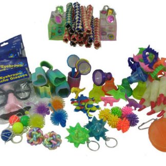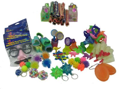Everyone will love this playful assortment of toys and novelties! Add these to pitilde;atas/em or put them in Feliz cumpleatilde;os/em goody bags for a fun surprise! You can also use this crazy collection for prizes at a school fiesta/em! 100 pieces per bag. Assortment may vary slightly but always contains only toys, not candy.