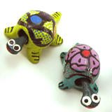 These bobblehead turtles are carved from the pits of tropical fruit and hand-painted in Mexico. 1 x 1 inch. Imported from Mexico.Handmade! No two are alike!
