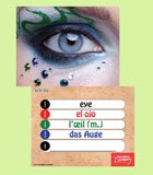 New images, bigger-than-ever cards, updated word listsdash;everything you asked for! Flash cards and bingo games with 32 topic-related vocabulary words. The flash cards are a full 8 x 11 inches with vocab in English, Spanish, French and German; plus a blank space to add your own language on the back. We’ve even included a reproducible study sheet for the students. The bingo games are 8 x 11 inches and include 36 full-color game cards. Bingo images are over 1 inch square and have the classic free space in the middle, great for reinforcement. Includes an envelope for storage. 36 game cards.br /br /Body parts vocabulary includes: ankle, arm, back, beard, bottom, cheek, chest, chin, ear, elbow, eye, eyebrow, eyelashes, feet, finger, fingernail, forehead, hair, hand, head, heart, knee, lips, mouth, neck, nose, shoulder, legs, teeth, toe, tongue and wrist.br /br /br /