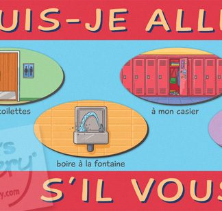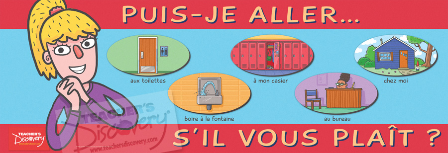 This poster helps students ask IN FRENCH to go places: to the bathroom, to the office, and more! 13 x 38 inches. Laminated.