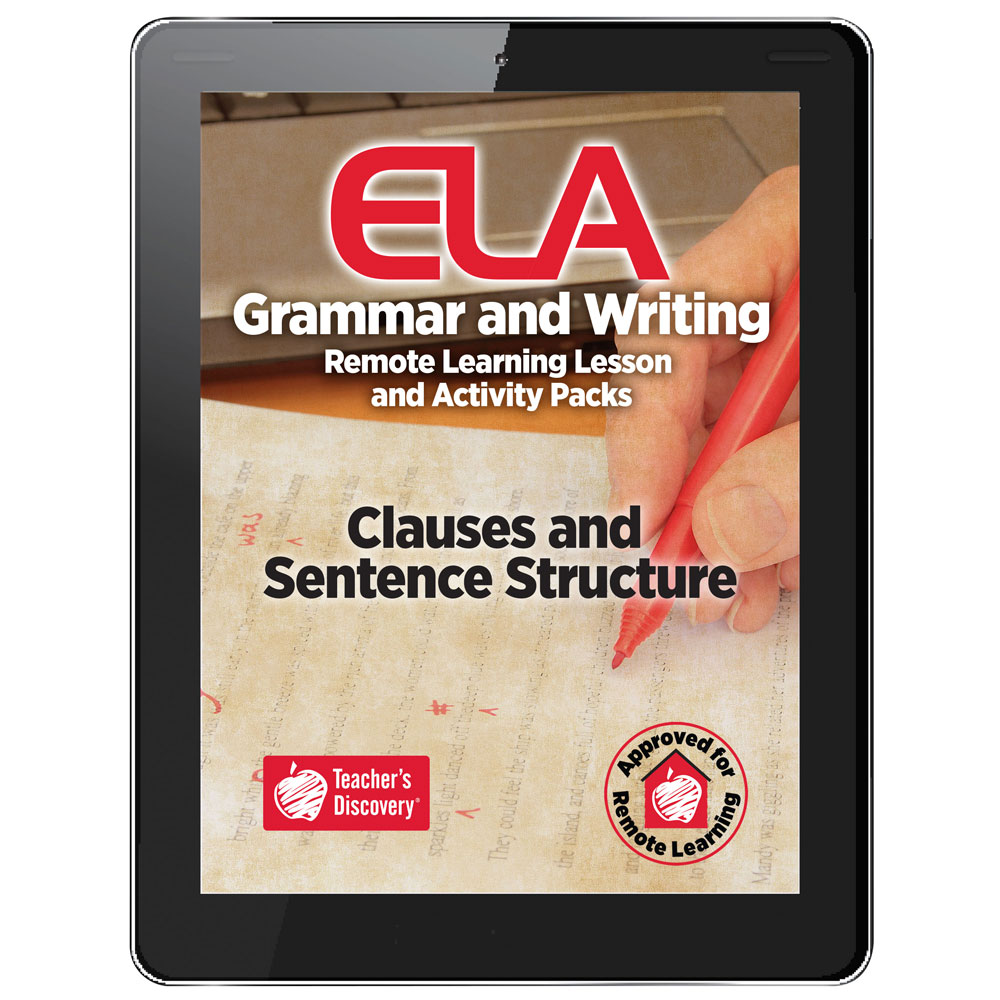Teach students to identify sentence structure and clauses in the provided text and their own writing! Each section provides a definition, examples, a literature model, a writing/journal prompt, and exercises that give students a chance to practice the concept.Includes: Main Clauses Subordinate Clauses Simple and Compound Sentences Complex and Compound-Complex Sentences Adjective Clauses Adverb Clauses Noun Clauses Types of Sentences Sentence Fragments Run-On SentencesEnglish. High school. PDF download, 59 pages. Adobe Reader required to view.