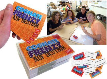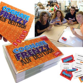 Finally, we bring you our version of “Apples to Apples,” made for your first year German students! It is filled with first-year level vocabulary and pop culture items, as well as hundreds of cognates to help your students realize how much German they already know just by knowing their own English language! It is an ideal game to play as an ice-breaker. The game includes two vocabulary lists with translations of all cards for any words your students may not know right off the bat. It’s also a perfect game for vocabulary reinforcement and recognition for upper-level German classes. Don’t wait! Your students will have a blast learning German. One card deck. Three to six players. Glossy cardstock in a storage box. All Levels.