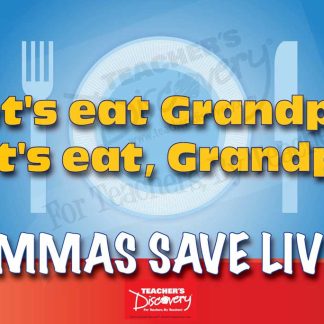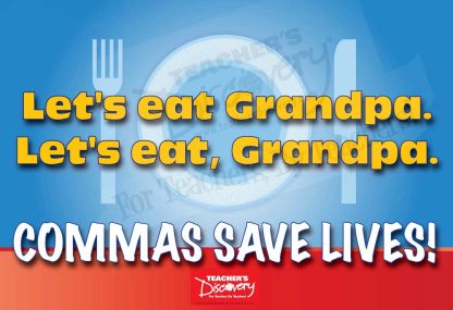 blockquoteLet’s eat Grandpa.Let’s eat, Grandpa.COMMAS SAVE LIVES!/blockquoteCopyright 2016. 19 x 13 inches. Cardstock. Middle school and high school.