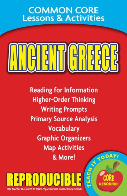 Meet the new Common Core State Standards for ELA as well as Literacy and Writing in History and Social Studies! This book is designed to supplement your Social Studies resources, adding new Common Core rigor, analysis, writing inference, text-dependent questions, and more into your daily instruction.br /Here’s how it works!Work through the lessons and activities as a class to teach your students higher-order thinking, analysis, and the 21st-century skills necessary to meet new Common Core State Standards expectations.Allow students to work through the lessons independently to build and practice these new skills.Include technology, collaboration, presentations, and discussion in the activities as you desire–you can decide how in-depth to go.Watch your class develop new abilities to meet the rigor of Common Core State Standards, right before your eyes!Ancient Greece–Common Core Lessons and Activities includes:Reading for InformationHigher-Order ThinkingWriting ProblemsPrimary Source AnalysisVocabularyGraphic OrganizersMap Activities and More!Tips for using and reproducing the book pages:Use some of the pages–or use them all–based on your grade, your students, your curriculum, and your needs.Use these pages at their current size, or if you prefer them to be 8.5 x 11 inches, enlarge them 125% on your copy machine.Use the CCSS correlations grid to easily see which Common Core standards are covered in each lesson.Copyright 2015. Middle School. 5 x 8 inches. Reproducible. Softcover, 24 pages.br /ISBN: 978-0-635-10587-5