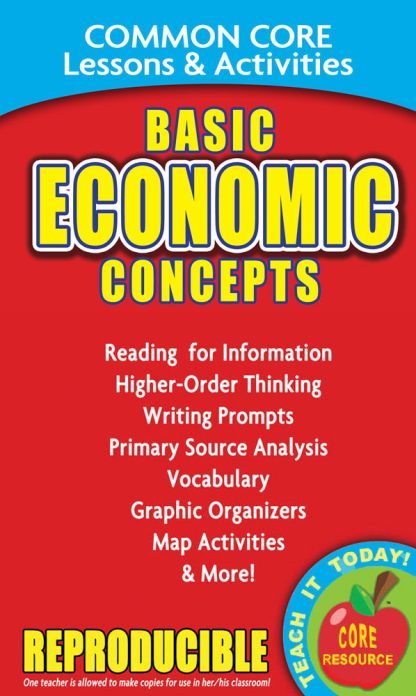 span style=”font-size: medium;”Basic Economics Concepts – Common Core Lessons and Activities book/spanMeet the new Common Core State Standards/em for ELA as well as Literacy ;amp; Writing in History and Social Studies! This book is designed to supplement your Social Studies resources, adding new Common Core rigor, analysis, writing inference, text-dependent questions and more into your daily instruction. Copyright 2013. 24 pages. Middle/high school levels.span style=”font-size: small;”Here’s how it works!/spanWork through the lessons and activities as a class to teach your students higher-order thinking, analysis, and 21st century skills necessary to meet new Common Core State Standards expectations.Allow students to work through the lessons independently to build and practice these new skills.bnbsp;Include technology, collaboration, presentations, and discussion in the activities as you desire – you can decide how in-depth to go.Watch your class develop new abilities to meet the rigor ofCommon CoreState Standards, right before your eyes!span style=”font-size: small;”Basic Economics Concepts- Common Core Lessons and Activities includes:/spanReading for InformationHigher-Order ThinkingWriting ProblemsPrimary Source AnalysisVocabularyGraphic OrganizersMap Activities ;amp; More!span style=”font-size: small;”Tips for using and reproducing the book pages:/spanUse some of the pages – or use them all – based on your grade, your students, your curriculum, and your needs.Use these pages at their current size, or if you prefer them to be 8.5 X 11 inches, enlarge them 125% on your copy machine.Use the CCSS correlations grid to easily see whichCommon Corestandards are covered in each lesson.divCopyright 2013. Soft cover, 24 pages, 8-1/2 x 5-1/4, reproducible. Middle/high school.ISBN:978-0-635-10590-5/divspan style=”font-size: small;”Table of Content includes:/spanp style=”padding-left: 30px;”>eeds and Wants:Reading Informational Textbr / Exchange ;amp; Money:Reading Informational Textbr / Scarcity, Choices, ;amp; Costs:Reading Informational Textbr / Getting in Line:Primary Source Analysisbr / Cost ;amp; Benefit of Choices:Graphical Analysisbr / Communities: Consumers ;amp; Producers:Reading Informational Textbr / “A Double Hold-up”:Primary Source Analysisbr / Factors of Production:Graphical Analysisbr / Incentives:Reading Informational Textbr / Supply and Demand:Data Analysisbr / Economic Flowchart:Vocabularybr / Factors Affecting Supply ;amp; Demand:Compare ;amp; Contrastbr / Economic Consequences:Cause ;amp; Effectbr / Adam Smith ;amp; Free Markets:Reading Informational Textbr / Economist Quotations:Summarizing Informationbr / Economic Systems:Reading Informational Textbr / Entrepreneurship:Writingbr / Banks, Savers, ;amp; Borrowers:Reading Informational Textbr / Government ;amp; Taxes:Reading informational Textbr / Common Core State Standards Correlations