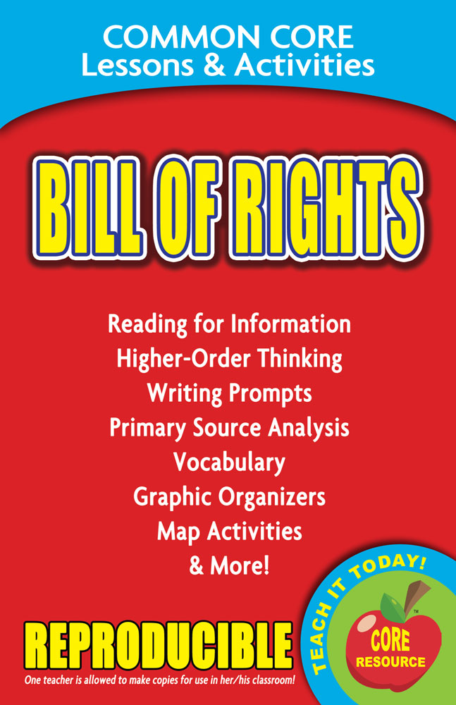 span style=”font-size: medium;”Bill of Rights – Common Core Lessons and Activities book/spanbr /Meet the new Common Core State Standards/em for ELA as well as Literacy ;amp; Writing in History and Social Studies! This book is designed to supplement your Social Studies resources, adding new Common Core rigor, analysis, writing inference, text-dependent questions and more into your daily instruction. Copyright 2013. 24 pages. Middle/high school levels.span style=”font-size: small;”Here’s how it works! /spanWork through the lessons and activities as a class to teach your students higher-order thinking, analysis, and 21st century skills necessary to meet new Common Core State Standards expectations.Allow students to work through the lessons independently to build and practice these new skills.Include technology, collaboration, presentations, and discussion in the activities as you desire – you can decide how in-depth to go.Watch your class develop new abilities to meet the rigor of Common Core State Standards, right before your eyes!span style=”font-size: small;”The Bill of Rights – Common Core Lessons and Activities includes:/spanReading for InformationHigher-Order ThinkingWriting ProblemsPrimary Source AnalysisVocabularyGraphic OrganizersMap Activities ;amp; More!span style=”font-size: small;”Tips for using and reproducing the book pages: /spanUse some of the pages – or use them all – based on your grade, your students, your curriculum, and your needs.Use these pages at their current size, or if you prefer them to be 8.5 X 11 inches, enlarge them 125% on your copy machine.Use the CCSS correlations grid to easily see which Common Core standards are covered in each lesson.Copyright 2013. Soft cover, 24 pages, 8-1/2 x 5-1/4, reproducible. Middle/high school.ISBN: 978-0-635-10584-4span style=”font-size: small;”Table of Contents include:/spanbr / Father of the Bill of Rights: Reading Informational Textbr / John Locke’s Influence: Reading Informational Text br / Amending the Constitution: Graphical Analysis br / Rights and Limitations: Summarizing Information br / The First Amendment: Reading Informational Textbr / March on Washington: Primary Source Analysis br / The Second Amendment: Reading Informational Textbr / The Third Amendment: Problem-Solution-Results br / The Bill of Rights: Summative Graphic Organizer br / The Fourth Amendment: Reading Informational Text ;amp; Writingbr / The Fifth Amendment: Reading Informational Textbr / The Fifth Amendment: Primary Source Analysisbr / The Sixth Amendment: Primary Source Analysis br / The Seventh Amendment: Reading Informational Textbr / The Eighth Amendment: Primary Source Analysisbr / Ninth ;amp; Tenth Amendments: Comparison of Primary Sources br / Bill of Rights Vocabulary: Vocabulary br / Four Freedoms: Primary Source Analysisbr / Common Core State Standards Correlations
