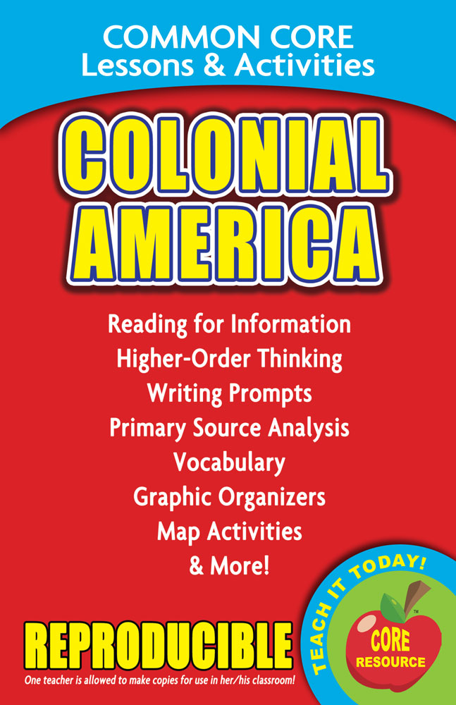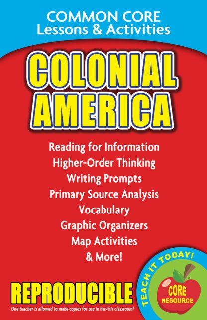 Meet the new Common Core State Standards for ELA as well as Literacy and Writing in History and Social Studies! This book is designed to supplement your Social Studies resources, adding new Common Core rigor, analysis, writing inference, text-dependent questions, and more into your daily instruction.br /Here’s how it works!Work through the lessons and activities as a class to teach your students higher-order thinking, analysis, and the 21st-century skills necessary to meet new Common Core State Standards expectations.Allow students to work through the lessons independently to build and practice these new skills.Include technology, collaboration, presentations, and discussion in the activities as you desire–you can decide how in-depth to go.Watch your class develop new abilities to meet the rigor of Common Core State Standards, right before your eyes!Colonial America–Common Core Lessons and Activities includes:Reading for InformationHigher-Order ThinkingWriting ProblemsPrimary Source AnalysisVocabularyGraphic OrganizersMap Activities and More!Tips for using and reproducing the book pages:Use some of the pages–or use them all–based on your grade, your students, your curriculum, and your needs.Use these pages at their current size, or if you prefer them to be 8.5 x 11 inches, enlarge them 125% on your copy machine.Use the CCSS correlations grid to easily see which Common Core standards are covered in each lesson.Copyright 2015. Middle School. 5 x 8 inches. Reproducible. Softcover, 24 pages.br /ISBN: 978-0-635-11984-1