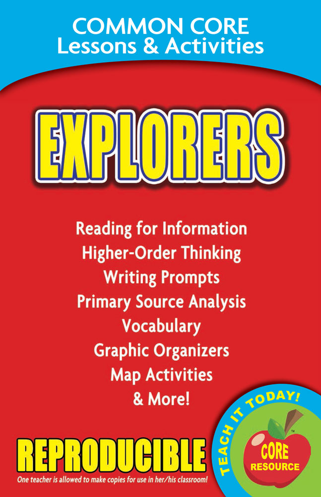 spanExplorers – Common Core Lessons and Activities book/spanMeet the newCommon Core State Standards/emfor ELA as well as Literacy ;amp; Writing in History and Social Studies! This book is designed to supplement your Social Studies resources, adding new Common Core rigor, analysis, writing inference, text-dependent questions and more into your daily instruction.spanHere’s how it works!/spanWork through the lessons and activities as a class to teach your students higher-order thinking, analysis, and 21st century skills necessary to meet new Common Core State Standards expectations.Allow students to work through the lessons independently to build and practice these new skills.Include technology, collaboration, presentations, and discussion in the activities as you desire – you can decide how in-depth to go.Watch your class develop new abilities to meet the rigor ofCommon CoreState Standards, right before your eyes!spanExplorers- Common Core Lessons and Activities includes:/spanReading for InformationHigher-Order ThinkingWriting ProblemsPrimary Source AnalysisVocabularyGraphic OrganizersMap Activities ;amp; More!spanTips for using and reproducing the book pages:/spanUse some of the pages – or use them all – based on your grade, your students, your curriculum, and your needs.Use these pages at their current size, or if you prefer them to be 8.5 X 11 inches, enlarge them 125% on your copy machine.Use the CCSS correlations grid to easily see whichCommon Corestandards are covered in each lesson.divCopyright 2013. Soft cover, 24 pages, 8-1/2 x 5-1/4, reproducible. Middle/high school.ISBN:978-0-635-10617-9span style=”font-size: small;”Table of Content includes:/span/divdivAge of Exploration: Reading Informational Textbr /Reasons for Exploration:Reading Informational Textbr /Means of Discovery: Reading Informational Textbr /Obstacles and Rewards:Classifying Informationbr /Prince Henry the Navigator:Reading Informational Textbr /Portuguese Explorers:Reading Informational Textbr /Columbus’ Discovery:Reading Informational Textbr /An Early Map:Primary Source Analysisbr /The New World: Primary Source Analysisbr /Tainos:Reading Informational Textbr /The Age of Exploration: Graphic Organizer/divdivMore Spanish Explorers:Reading Informational Textbr /Conquistadors:Reading Informational Textbr /English Explorers:Reading Informational Textbr /French Explorers:Reading Informational Textbr /Explorer Quotations:Point of Viewbr /Exploring the Americas: Chronological Events/divdivRegions of Exploration: Map Activity/divdivExplorer’s Vocabulary: Vocabularybr /Common Core State Standards Correlations/div