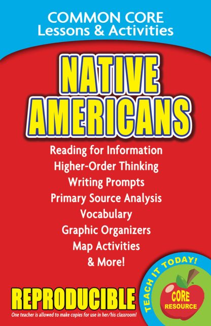 span>ative Americans – Common Core Lessons and Activities book/spanMeet the newCommon Core State Standards/emfor ELA as well as Literacy ;amp; Writing in History and Social Studies! This book is designed to supplement your Social Studies resources, adding new Common Core rigor, analysis, writing inference, text-dependent questions and more into your daily instruction.spanHere’s how it works!/spanWork through the lessons and activities as a class to teach your students higher-order thinking, analysis, and 21st century skills necessary to meet new Common Core State Standards expectations.Allow students to work through the lessons independently to build and practice these new skills.Include technology, collaboration, presentations, and discussion in the activities as you desire – you can decide how in-depth to go.Watch your class develop new abilities to meet the rigor ofCommon CoreState Standards, right before your eyes!span>ative Americans- Common Core Lessons and Activities includes:/spanReading for InformationHigher-Order ThinkingWriting ProblemsPrimary Source AnalysisVocabularyGraphic OrganizersMap Activities ;amp; More!spanTips for using and reproducing the book pages:/spanUse some of the pages – or use them all – based on your grade, your students, your curriculum, and your needs.Use these pages at their current size, or if you prefer them to be 8.5 X 11 inches, enlarge them 125% on your copy machine.Use the CCSS correlations grid to easily see whichCommon Corestandards are covered in each lesson.divCopyright 2013. Soft cover, 24 pages, 8-1/2 x 5-1/4, reproducible. Middle/high school.ISBN:978-0-635-10622-3span style=”font-size: small;”Table of Content includes:/spanEarly Native Americans: Reading Informational Textbr /Mississippian Culture: Main Idea ;amp; Supporting Detailsbr /Regions of North America: Reading Informational Textbr /Columbian Exchange:Reading Informational Textbr /Clashing Cultures: Point of Viewbr />ative American Leaders: Classifying Informationbr /Thoughts on Land: Comparison of Primary Sourcesbr /Indian Removal:Reading Informational Textbr />ative American Culture: Research ;amp; Writingbr /Westward Expansion: Interpreting Visual Databr /Plains Indians ;amp; the Buffalo: Inferencebr /Indian Wars in the West: Cause ;amp; Effectbr /Assimilation: Problem-Solution-Resultsbr /General Allotment Act: Primary Source Analysisbr />avajo Code Talkers:Primary Source Analysisbr /Recalling the Past:Primary Source Analysisbr /Cultural Vocabulary: Vocabularybr /Common Core State Standards Correlations/div