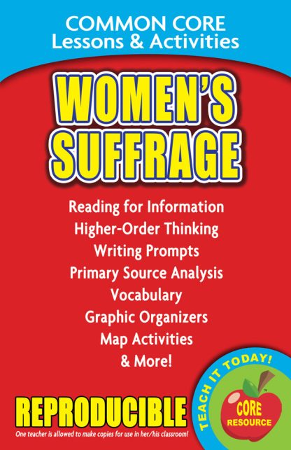 Meet the new Common Core State Standards for ELA as well as Literacy and Writing in History and Social Studies! This book is designed to supplement your Social Studies resources, adding new Common Core rigor, analysis, writing inference, text-dependent questions, and more into your daily instruction.br /Here’s how it works!Work through the lessons and activities as a class to teach your students higher-order thinking, analysis, and the 21st-century skills necessary to meet new Common Core State Standards expectations.Allow students to work through the lessons independently to build and practice these new skills.Include technology, collaboration, presentations, and discussion in the activities as you desire–you can decide how in-depth to go.Watch your class develop new abilities to meet the rigor of Common Core State Standards, right before your eyes!Women’s Suffrage and the 19th Amendment–Common Core Lessons and Activities includes:Reading for InformationHigher-Order ThinkingWriting ProblemsPrimary Source AnalysisVocabularyGraphic OrganizersMap Activities and More!Tips for using and reproducing the book pages:Use some of the pages–or use them all–based on your grade, your students, your curriculum, and your needs.Use these pages at their current size, or if you prefer them to be 8.5 x 11 inches, enlarge them 125% on your copy machine.Use the CCSS correlations grid to easily see which Common Core standards are covered in each lesson.Copyright 2015. Middle School. 5 x 8 inches. Reproducible. Softcover, 24 pages.br /ISBN: 978-0-635-10591-2