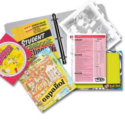 This binder comes with everything your students need to succeed in Spanish class–all in one place. All items are three-hole punched and neatly organized. They keep handouts and notes together for easy reference. 1 1/4-inch binder, 11 x 11 inches.br / br / Each binder includes:The classic Teacher’s Discovery cover.Five dividers–handouts, assignments, tests and quizzes, reference materials, and misc. material.Student notebook dictionary (32 pages).Kwik Sheet.Verb wheel.Grammar card.