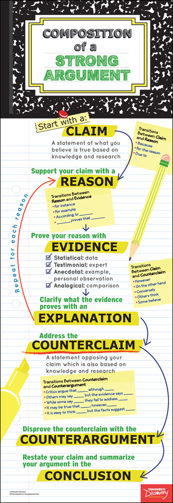 Show students how to develop and organize strong arguments with this classroom reference poster.Copyright 2018. Middle school, high school. 13 x 38 inches. Laminated.