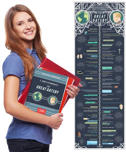 What would motivate a young person to enter the military? How do money and class both create and destroy relationships? How does racism shape societal norms and values?/em Context-based questions give students the framework for a deeper analysis and understanding of F. Scott Fitzgerald’s The Great Gatsby/.Book Features:Six discussion activitiesTen text analysis activitiesAlignment to Common Core State Standards (CCSS)Each Discussion Activity:Provides background and a discussion questionIncludes multiple resource texts (informational)Presents related excerpts from the novelIs three to four reproducible pagesEach Text Analysis Activity:Provides a quotation from the novelPresents three differentiated prompts that pertain to the quotationContains a personal reflection prompt, a critical thinking prompt, and a literary analysis promptIs one reproducible pagePoster Shows:Historical world events that occurred during the author’s early lifeKey events of F. Scott Fitzgerald’s life before the publication of The Great Gatsby/ Selected quotations from The Great Gatsby/Copyright 2017. High school.Set includes one Print Book/ and one Poster/.Print Book: Spiral-bound. 8 x 11 inches. Reproducible. 36 pages. Poster: 13 x 38 inches. Laminated.