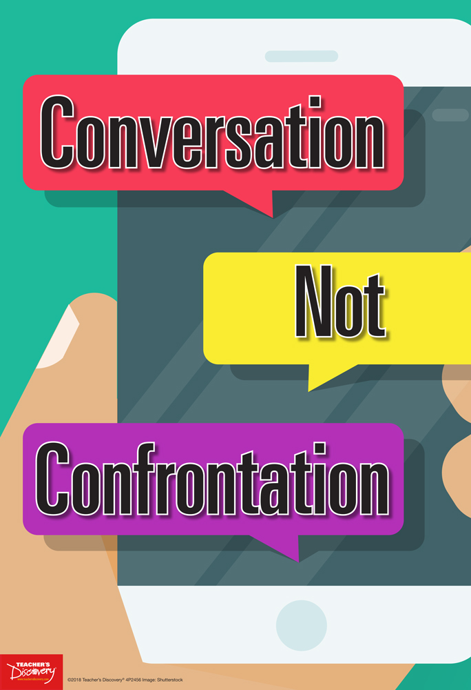Learning only happens when we listen to each other. Remind students to have conversations with people, not confrontations.Copyright 2018. Middle school, high school. 13 x 19 inches. Cardstock.