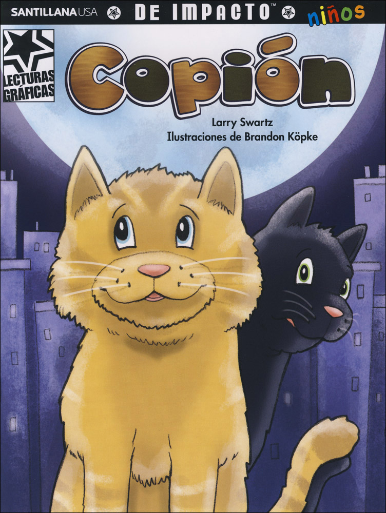 These two cats do everything together, but it can get annoying when one is always a ;ldquo;copy cat;rdquo;! Students learn Spanish action verbs as they follow the two alley cats on their nighttime adventure.Copyright 2015. Spanish. Beginning. Elementary. 6 x 8 inches. Softcover, 12 pages.