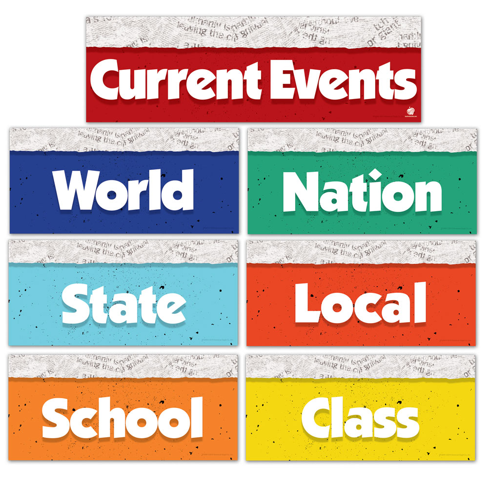 Who won the primary? What was the score of the homecoming game? Keep your students in the know, from international news to breaking stories, inside your own classroom.One 19 x 6-inch banner, six 13 x 6-inch cards. Cardstock.a “https://teachersdiscovery.lpages.co/weekly-current-event/”Click here to sign up for our FREE Weekly Current Events, and get stories and critical thinking questions sent to your inbox every week!/a