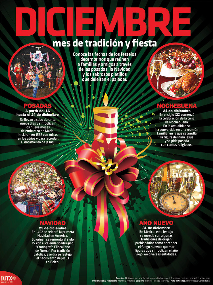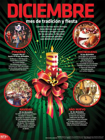 Exclusive partnership with Notimex, Agencia de Noticias del Estado Mexicano/em for a limited print edition.Description of this month of tradition–an explanation of the Posadas/, Christmas Eve, Christmas Day, and New Year’s Eve.Includes a Think-Pair-Share Strategies Infographic Resource Guide/ download (PDF) delivered via email. Adobe Reader required to view PDF. Email address required for download delivery./Spanish. Novice-Mid/High. 19 x 26 inches. Laminated.img alt=”” src=”//aedownload.net/teachersdiscovery/images/NTX_Notimex_logo.jpg” style=”float: left; border-width: 0px; border-style: solid; margin: 0px 6px; height: 80px; padding-right: 10px;” /In partnership with itimex, Agencia de Noticias del Estado Mexicano//, a global news agency with 48 years of experience offering national and international coverage of the most important events through digital platforms to deliver information for print and electronic media (radio, television, digital media, newspapers, magazines, and social networks).