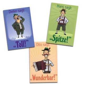 Dieter, Hans and the gang have positive messages for your German students! Three sheets of 20 assorted full color stickers, for a total of 60. Each sticker measures over one inch across.