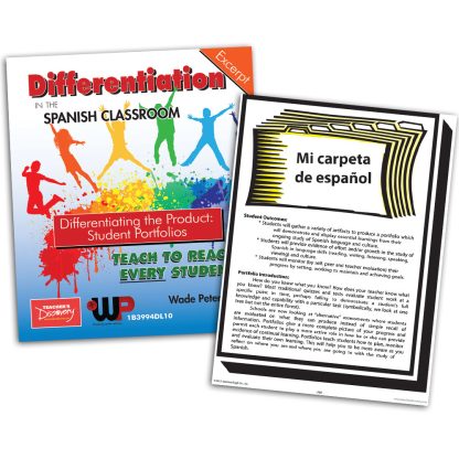 When students maintain portfolios, they can visualize their individual growth. This packet yields instructions for students on how to organize a portfolio and what to put in it. Differentiation in the Spanish Classroomencourages teachers to use a new method of teaching to reach every student individually. Every student learns in a different style and at a different pace. AuthorWade Petersenhas carefully introduced differentiation and offered suggestions, ideas, and teaching materials to help you integrate differentiation in your classroom.Copyright 2013. Spanish, English. All levels. Reproducible. PDF download, 22 pages. Adobe Reader required to view PDF. img alt=”” src=”//aedownload.net/teachersdiscovery/images/Author_Wade_Petersen.jpg” style=”float: left; border-width: 0px; border-style: solid; margin: 0px 6px; height: 150px; padding-right: 10px;” /About the Author Wade Petersen has been teaching in Iowa for 30 years. He has taught French I, II, III, IV; freshman English; A.P. Composition; A.P. Literature; American literature; world literature and creative writing. He earned his B.A. in French and English from Northwestern College. During his undergraduate years, he studied at theAlliance Fran;ccedil;aisein Paris. In 2001, he earned his master’s degree in Effective Teaching, Learning, and Leadership from Drake University.Petersen has been the recipient of many prestigious awards and has served in leadership roles within the Iowa World Language Association. Petersen’s presentations continue to earn rave reviews, which include being named ;ldquo;Best of Iowa;rdquo; four times. He presents various workshops throughout the U.S. and serves as a keynote speaker at state conferences.Wade Petersen has published over 40 products with Teacher’s Discovery. His best-selling materials are creative, useful, and practical for any classroom. Wade’s publishing philosophy clearly connects with his motto that;ldquo;Creativity Speaks Volumes.;rdquo;