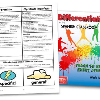 Differentiation in the Spanish Classroom encourages teachers to use a new method of teaching to reach every student individually in the classroom. Every student learns in a different style and at a different pace. This reproducible book offers a new approach to teaching that accommodates each student’s needs individually. Author Wade Petersen has carefully introduced differentiation and offered suggestions, ideas and teaching materials to help you integrate differentiation in your classroom. Join the differentiation movement today! Copyright 2013. Spanish, English. All levels. Reproducible. 119 pages. Book Download: PDF. Adobe Reader required to view PDF. Print Book: Three-ring binder. 10 x 12 inches. Loose-leaf paper. 8 x 11 inches. img alt=”” src=”//aedownload.net/teachersdiscovery/images/Author_Wade_Petersen.jpg” style=”float: left; border-width: 0px; border-style: solid; margin: 0px 6px; height: 150px; padding-right: 10px;” /About the Author Wade Petersen has been teaching in Iowa for 30 years. He has taught French I, II, III, IV; freshman English; A.P. Composition; A.P. Literature; American literature; world literature and creative writing. He earned his B.A. in French and English from Northwestern College. During his undergraduate years, he studied at theAlliance Fran;ccedil;aisein Paris. In 2001, he earned his master’s degree in Effective Teaching, Learning, and Leadership from Drake University.Petersen has been the recipient of many prestigious awards and has served in leadership roles within the Iowa World Language Association. Petersen’s presentations continue to earn rave reviews, which include being named ;ldquo;Best of Iowa;rdquo; four times. He presents various workshops throughout the U.S. and serves as a keynote speaker at state conferences.Wade Petersen has published over 40 products with Teacher’s Discovery. His best-selling materials are creative, useful, and practical for any classroom. Wade’s publishing philosophy clearly connects with his motto that;ldquo;Creativity Speaks Volumes.;rdquo;