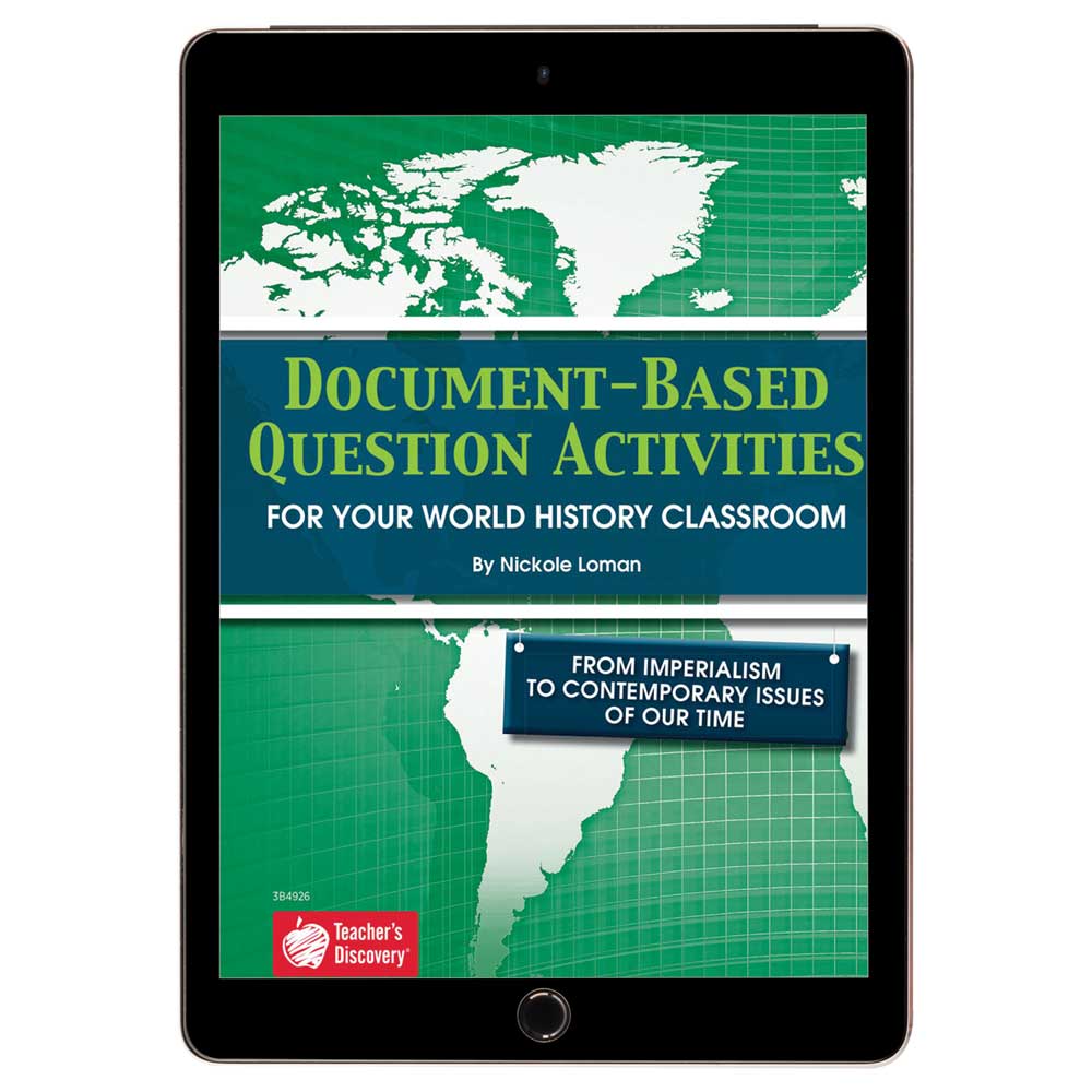 Delve into World History primary source analysis like never before with Document-Based Question Activities. In each of the 14 chronological DBQs, students analyze pivotal eras of history to make valuable connections.div class=”row”div class=”col-lg-8 col-md-6 col-sm-12″ style=”padding: 0px;”Digital Book Download includes a complete teacher edition PDFand editable PDF student pages. Printable and projectable, digital DBQs are perfect for seamless teaching in class, at home, or any combination. Student DBQ activities are separated into individual and interactive PDF files your students can type directly into. They simply type their responses, save, and send it back to you! A teacher answer key for each DBQ is grouped with the corresponding sample student essay position for easy access! Activities are designed to work with any LMS, including Google Classroom, Canvas, and Schoology./divdiv class=”col-lg-4 col-md-6 col-sm-12″a data-toggle=”modal” data-target=”#imageModal” style=”cursor: pointer;”centerimg src=”//aedownload.net/teachersdiscovery/images/landing/social-studies/Hybrid_Learning_DBQs.gif” style=”width: 80%;”br /span style=”color: #cc3333; font-family: ‘Permanent Marker’, cursive; font-size: 20pt;”Fully Editable Student DBQs!/span/center/a/div/divAssess student progress, practice document analysis, prepare for testing, strengthen historical thinking skills, and more with: Instructions and tips to improve student scores Ready-to-go reproducible primary source documents and analysis questions Essay question prompts with sample positions and a scoring rubric C3 and Common Core national standards alignmentDBQ Topics: The Height of Imperialism East Asia Under Challenge World War I Between the Wars Nationalism Around the World World War II International Developments Following World War II South Africa and Apartheid Cold War and the Cuban Missile Crisis The ;ldquo;Warming;rdquo; of the World Globalism and Economic Interdependence Terrorism, at Home and Abroad Contemporary Issue: Overpopulation Contemporary Issue: Labor Conditions in Emerging Countriesspan style=”color:#FF0000;”Download the free sample chapter located in “Additional Info.”/spanCopyright 2019. High school. Reproducible. 145 pages.Digital Book Download:PDFs.Print Book:Spiral-bound. 8.5 x 11 inches. The print book does NOT include digital PDFs.img alt=”” src=”//aedownload.net/teachersdiscovery/images/Author_Nickole_Loman.jpg” style=”float: left; border-width: 0px; border-style: solid; margin: 0px 6px; height: 200px; padding-right: 10px;” /About the AuthorNickole Loman is currently a seventh-grade social studies teacher in Hendersonville, TN.She adores working with middle school students due to their positive energy and willingness to push themselves to the next level.She has enhanced student motivation with a daily infusion of music, cooperative learning, theatrical performances, lively discussion, and team-building games.Outside of her profession, she enjoys spending time with her pets, reading books, watching historical-fiction television series, listening to 80s and 90s pop music, and constructing social studies lessons.She is especially grateful for her opportunity to work with Teacher’s Discovery, in which she feels a sense of accomplishment by helping other teachers.!– Modal –div class=”modal fade” id=”imageModal” tabindex=”-1″ role=”dialog” aria-labelledby=”imageModalLabel” aria-hidden=”true” div class=”modal-dialog modal-lg” role=”document” div class=”modal-content” div class=”modal-header” h2 class=”modal-title” id=”exampleModalLabel”Fully Editable Student DBQs!/h2 button type=”button” class=”close” data-dismiss=”modal” aria-label=”Close” span aria-hidden=”true”;times;/span /button /div div class=”modal-body” centerimg src=”//aedownload.net/teachersdiscovery/images/landing/social-studies/Hybrid_Learning_DBQs_Modal.gif” style=”width: 80%;”/center /div div class=”modal-footer” button type=”button” class=”btn btn-secondary” data-dismiss=”modal”Close/button /div /div /div/div