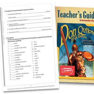 Expand your Level 2 Spanish students;#39; understanding of Cervantes;#39; Spain, his life and the classic themes in one of the greatest stories in literature.Teacher’s Guide includes: lecture notes vocabulary lists sample quizzes rubrics answer keys suggested lesson plans suggested student projects, bulletin boards, and supplemental resourcesWritten by a passionate Don Q lover and retired Spanish teacher, specifically for the Teacher;#39;s Discovery illustrated Don Quijote/em Intermediate Reader.Copyright 2010. Spanish, English. Level 2. Middle school, high school. Reproducible. 47 pages.Book Download: PDF. Adobe Reader required to view PDF.Print Book: Softcover. 8 x 11 inches.