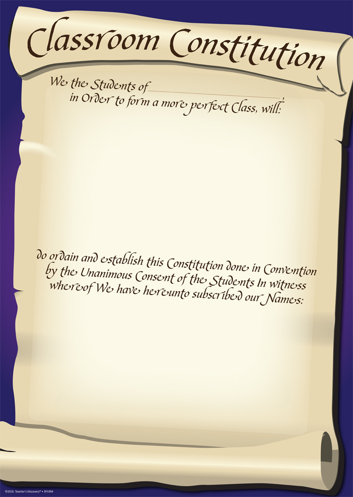 With this poster, students become the “founding fathers,” customizing, discussing, and ratifying class rules and expectations with their signatures at the bottom. Can be signed with dry- or wet-erase markers to reuse again and again each school year! Copyright 2016. 19 x 27 inches. Laminated to last.