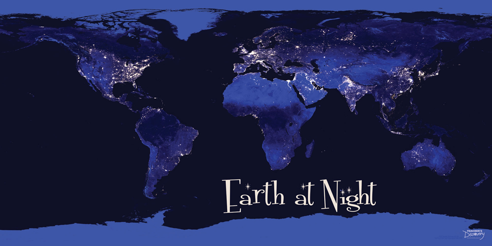 Why are there more lights in certain areas than others? Why is the Nile River Valley illuminated while the Amazon is dark? Can you find Chicago? New York? Your hometown?Teach so much more than just physical geography with this dramatic view of the earth at night. This color composite map was assembled from hundreds of NASA and National Oceanic and Atmospheric Administration satellite images. span style=”color:#FF0000;”Download the free Teachable Moments located in “Additional Info.”/spanCopyright 2017. 39 x 20 inches. Laminated to last. Middle school, high school.