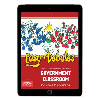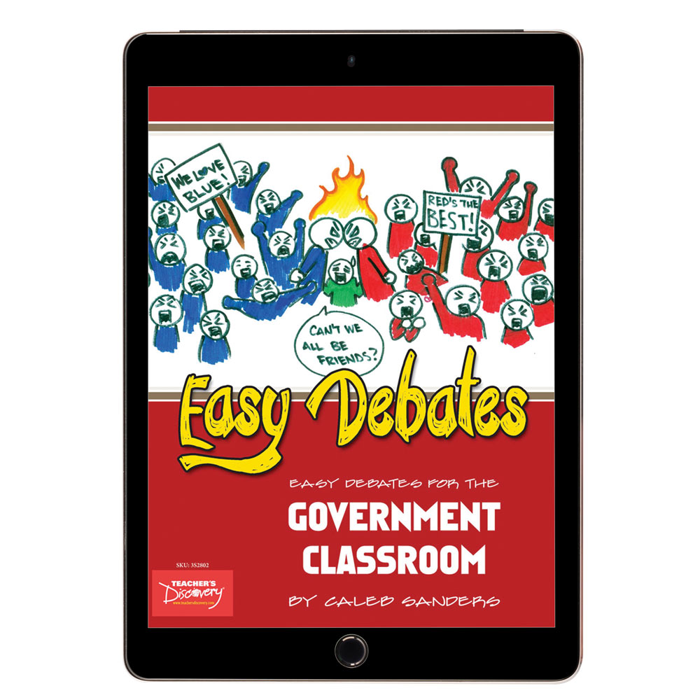 Initiate Student Debates Stimulate Interest, Teamwork, and Participation Increase Knowledge and ConfidenceThere’s nothing like introducing an argument to get students involved with the topics you’re teaching! Framing these subjects in a debate format helps them get invested and form a passion for research and learning outside the classroom.The debate format in this book gets the whole class involved in the discussion in a fun and challenging way–far better than a lecture! These debates are all high school-appropriate, and will help you stimulate discussions and improve the involvement of your students.Topics range across subjects such as: presidential power, congressional term limits, the influence of interest groups, and much more. Of course, debates are not limited to the topics in this book–once you have the format down, you can create your own debate subjects!Enclosed you will find ready-to-use debate lessons for your students, as well as different debate styles, a scoring rubric, and ideas on how to expand and extend each debate.Follow-up questions are also included for each topic, to ensure that each student truly comes away from the debate with well-rounded knowledge of the subject.Copyright 2016. High school. Reproducible. 47pages.span style=”color:#FF0000;”Download the free “Easy Debates with Zoom Online Instructional Sheet” and sample chapter located in “Additional Info.”/spanBook Download: PDF.Adobe Reader required to view PDF.Print Book: Spiral-bound. 8.5 x 11 inches.img alt=”” src=”//aedownload.net/teachersdiscovery/images/Author_Caleb_Sanders.jpg” style=”float: left; border-width: 0px; border-style: solid; margin: 0px 6px; height: 150px; padding-right: 10px;” /About the AuthorCaleb Sanders has spent his time in education as a Social Studies teacher at the high school level for the last 16 years. He was recognized as one of the Arch Coal Teacher Achievement Award recipients in the state of Wyoming in 2015, and has been recognized as Teacher of the Year by his district. Caleb is the author of the Teacher’s Discovery Easy Debates /emseries and the SHOW ME Challenges and Clues/em series, as well as Creating Easy Mock Trials for Your Social Studies Classroom/em. He has created a steady stream of mock trials, debates, simulations, and other activities that he frequently uses in his classroom to engage students in lively learning. Caleb is married to Lexi Sanders, and they have three children. He loves astronomy, board games, puzzles, and collecting children’s books. His identical twin brother is his department chair at the same high school, which results in plenty of fun confusion!