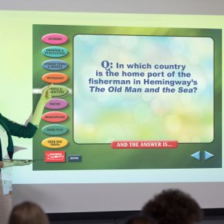 Learn Something New Every Day with ELA Question a Day: 180 Trivia Questions and Answers!Project the PDF on your board, select an ELA-related category, choose a question, and watch engagement rise. The answer only appears when you’re ready to reveal it. Questions of varying difficulty cover authors, grammar and punctuation, literary terms and devices, mythology, novels and characters, poetry, word play, Shakespeare’s works, and more./Move through the categories easily with right and left navigation arrows, or skip around to mix things up.Printable questions and answers included.Create teams, encourage friendly competition, or begin class with a thought-provoking question–it’s a great way to start the day!Copyright 2016. English. Color PDF. Middle school, high school. PC and Mac compatible. 205 pages.Download: PDF. Adobe Reader required to view PDF. CD: CD. PDF. Adobe Reader required to view PDF.