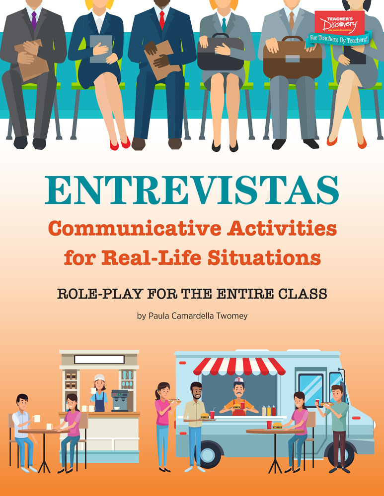 Bring real-life conversations into your classroom by using open-ended role play for the entire class, all en espatilde;ol./emLearn about the clubs at school and find a study-buddy for the days you might miss class. Do you have a talent? Meet with a talent scout! Would you like to adopt a pet? Discuss it with the shelter agent! Try your hand at bargaining in a flea market or at a garage sale. Check out a car auction!Copyright 2019. Spanish. Middle school, high school. 50 pages.Book Download:/ PDF. Adobe Reader required to view PDF. Print Book: /Spiral-bound. 8.5 x 11 inches.img alt=”” src=”//aedownload.net/teachersdiscovery/images/Author_Paula_Twomey_Sachuaman_Peru.jpg” style=”float: left; border-width: 0px; border-style: solid; margin: 0px 6px; height: 160px; padding-right: 10px;” /About the AuthorPaula Twomey/ is a Rockefeller Fellow, has a BA from SUNY Albany and an MA from Middlebury College, and is currently an adjunct instructor at Ithaca College. After 31 years in the classroom, Paula still enjoys teaching, traveling, mentoring, writing curriculum, authoring books, and giving advice!