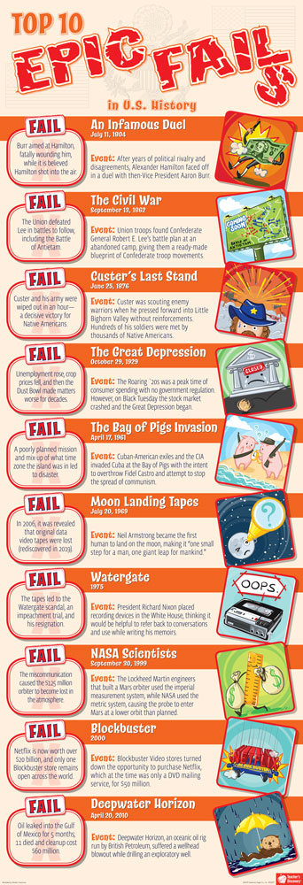 Did you know that Blockbuster turned down an offer to buy Netflix? Or that Union soldiers found Confederate battle plans ahead of the Battle of Antietam?/emMistakes happen, but when it changes the course of U.S. history, an oops turns into a complete EPIC FAIL!13 x 38 inches.Laminated. All levels.