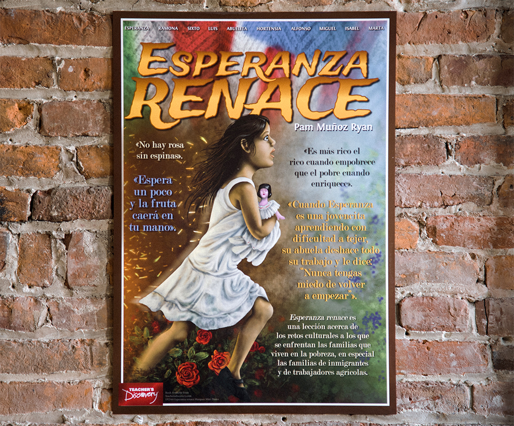 Nunca tengas miedo de volver a empezar;raquo;./em As you read the classic novel Esperanza renace/em in your class, this poster makes a great reference. Use this poster to illustrate the symbolism, characters, and themes of the book to your students as you read it.Copyright 2018. 19 x 27 inches. Laminated.Teacher’s Tip:p style=”margin-left: 40px;”Teachers can incorporate an authentic novel into the curriculum by choosing a noteworthy section, discussing symbolism within the novel, and describing the significance of the novel itself.p style=”margin-left: 40px;”Have students use a poster board and markers to create their own marquee posters for this book, but with each chapter’s contents as the theme for each particular poster. Once all the posters are done, have students retell the story as they use drawings on their posters to recount, in order, what happened.