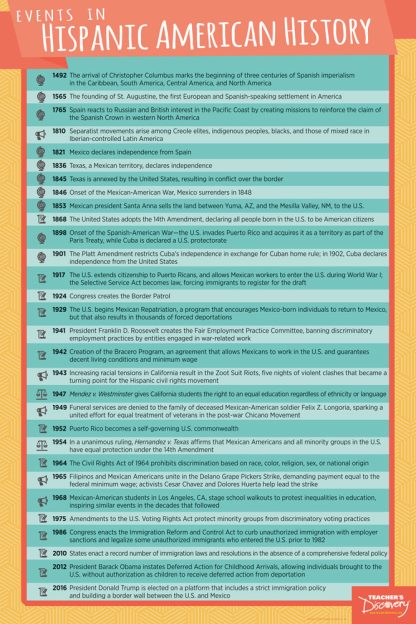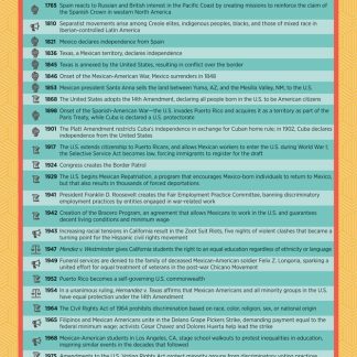 The last 500 years have seen the arrival of Spanish-speakers in America, shifting borders, and the fight for civil rights. Introduce 30 key events that helped shape Hispanic history in the United States.span style=”color:#FF0000;”Download the free Teachable Momentssup/sup PDF located in ;ldquo;Additional Info.;rdquo;/spanCopyright 2019. 24 x 36 inches. Laminated.