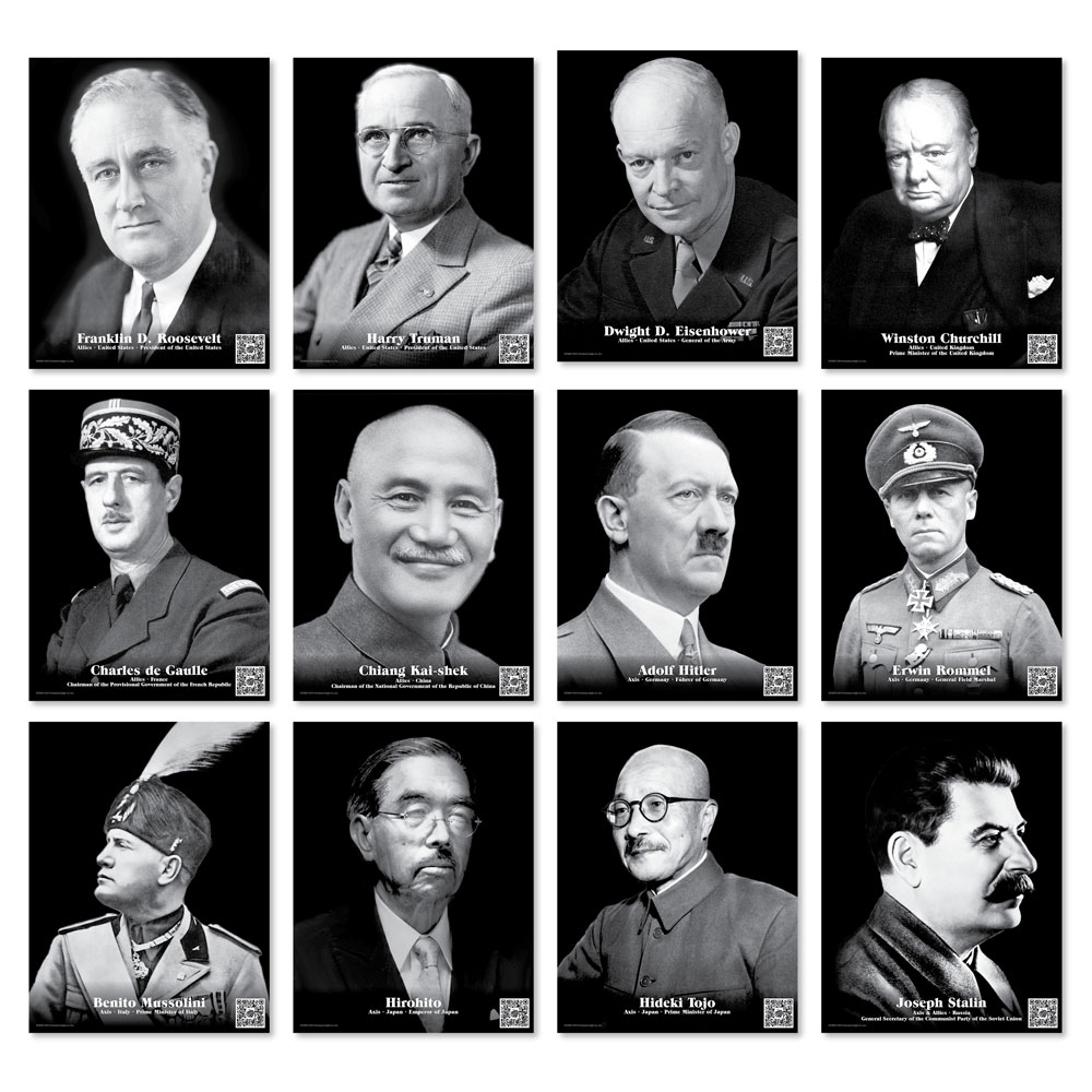 More than just writing on the wall, these mini-posters show students World War II like never before! Prominent figures from World War II QR codes lead students directly to related primary-source film clips Reproducible video analysis worksheetTwelve 8.5 x 11-inch posters. Cardstock. QR code scanner required to view film clips. Clips range from 33 seconds to 12 minutes, 23 seconds in length. Quality varies due to the age and nature of the films. Clips include depictions of war.