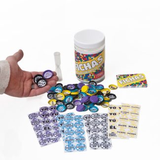 Teach and reinforce high-frequency verb conjugation with this fast-paced game. Students match the subject fichas/ with the conjugated verb cards as fast as they can! The student to run out of fichas/ first is the winner! Available for Present Tense (1G0788), Present Subjunctive (1G0789), and Preterite Tense (1G0790). Copyright 2014. Three to five players. Each game contains 78 verb cards, one timer, one answer key and materials to make 80 fichas/. Beginning, Intermediate.